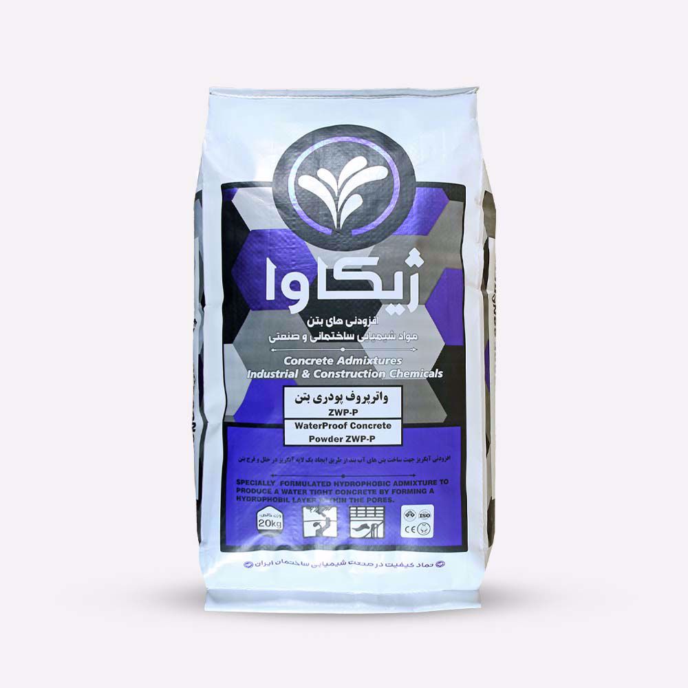 واترپروف پودری بتن ZWP-P پس از اختلاط با بتن، قشری هيدروفوبيك (آب گريز) در داخل منافذ، حفرهها و روی سطح بتن به وجود آورده و ارتباط مجاری ريز داخل بتن را با يكديگر قطع كرده و نفوذپذيری آن را كاهش می دهد. قشر حاصله خاصيتی پايدار داشته و علاوه بر خاصيت آب گريزی، مقاومت بتن را نیز در مقابل تهاجم سولفاتها و ساير محلولهای شيميايی، افزايش می دهد.